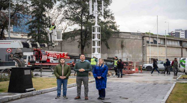 Bornova Belediyesi’nin Abide-i Hürriyet Meydanı’na kurduğu Türkiye’nin en kapsamlı hibrit enerji direği, güneş ve rüzgâr enerjisini aynı anda kullanarak parkın tüm elektrik ihtiyacını karşılayacak. Başkan Ömer Eşki, hedeflerinin Bornova Belediyesi’nin enerjisini yenilenebilir kaynaklardan üretmek ve buradan sağlanan tasarrufu sosyal desteklere aktarmak olduğunu vurguladı.