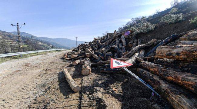 Yangının ardından kesilen ağaç tomrukları menfez girişini tıkadı