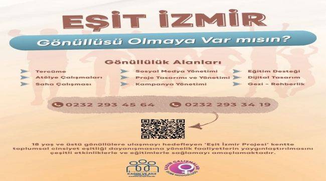 İzmir Büyükşehir Belediyesi, kadınların ve kız çocuklarının güçlenmesini desteklemek ve toplumsal cinsiyet eşitliğinin sağlanması amacıyla Eşit İzmir projesini başlattı. Kadınların ve kız çocuklarının yaşamına dokunacak pek çok farklı alandaki destekleri kapsayan projeye gönüllü olmak için başvurular başladı.