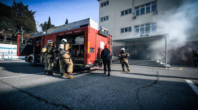 İzmir Büyükşehir Belediyesi İtfaiye Dairesi Başkanlığı ekipleri tarafından Buca’da bulunan Rüştü Ünsal Polis Meslek Yüksekokulu’nda yangın tatbikatı gerçekleştirildi. Tatbikat senaryosuna göre, 4 katlı binanın zemin katında yer alan bir derslikte elektrik hatlarından kaynaklanan bir yangın çıktı. Dumanların hızla binayı sarması üzerine vakit kaybetmeden 112 Acil Çağrı Merkezi’ne haber verildi. İhbar üzerine kısa sürede olay yerine ulaşan itfaiye ekipleri, yangına hızla müdahale ederek alevleri kontrol altına almayı başardı.