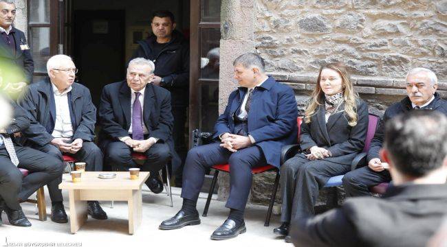 İzmir Büyükşehir Belediye Başkanı Dr. Cemil Tugay, Vakıflar Genel Müdürlüğü tarafından Meslek Fabrikası binasının boşaltılması için gönderilen tebligat nedeniyle mesaisini tarihi binada sürdürmeye devam ediyor. Başkan Tugay’a bir destek de İzmir Büyükşehir Belediyesi eski Başkanı Aziz Kocaoğlu’dan geldi. Tarihi binada Başkan Tugay’la görüşen Kocaoğlu, burada basın mensuplarına açıklama yaptı.
